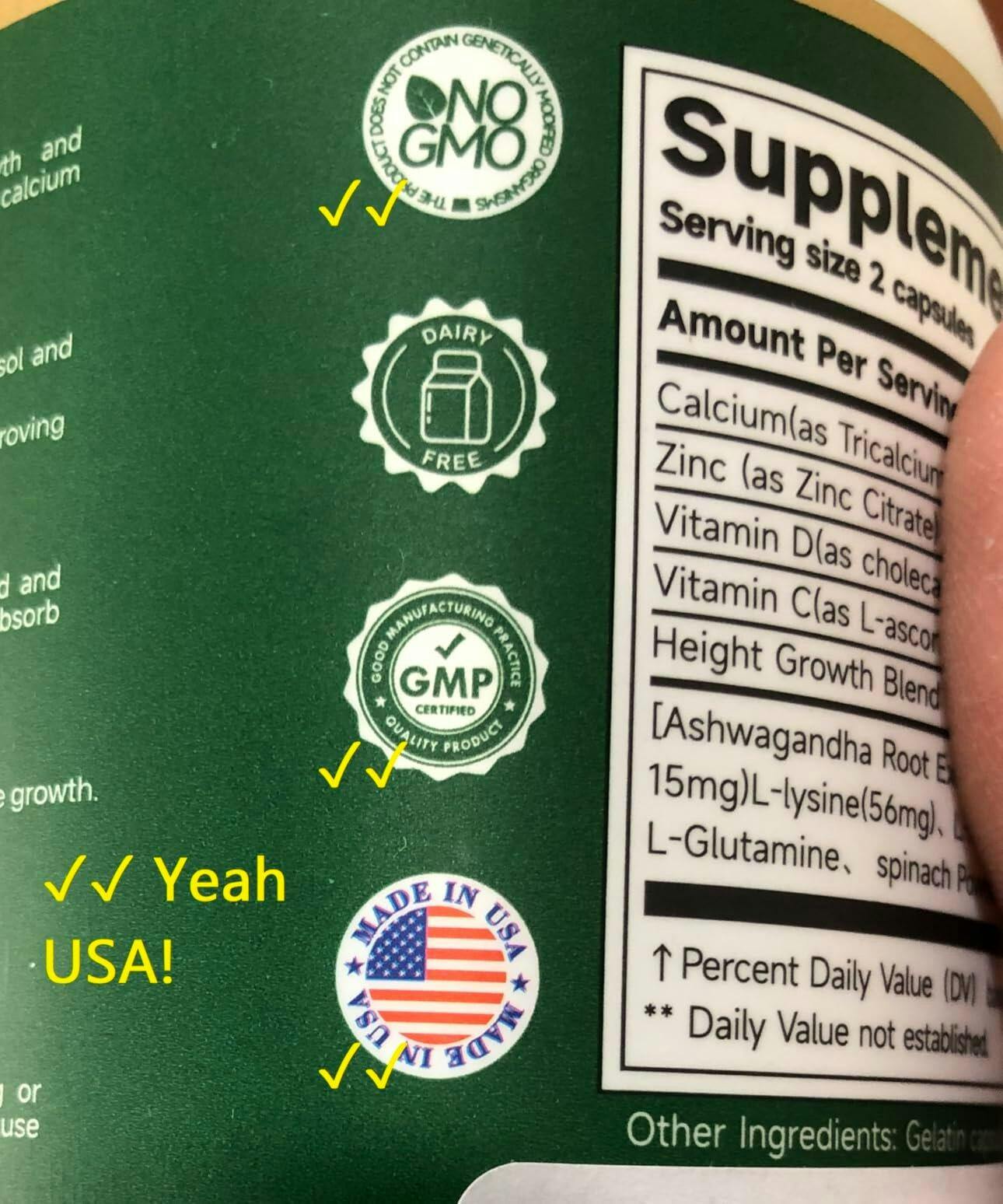 Los ingredientes principales son el calcio, el zinc, la vitamina D y la vitamina C. Además, este suplemento tiene su propia mezcla patentada para el crecimiento que incluye ashwagandha, L-arsina, L-arginina, L-ornitina, L-glutamina y espinacas en polvo.